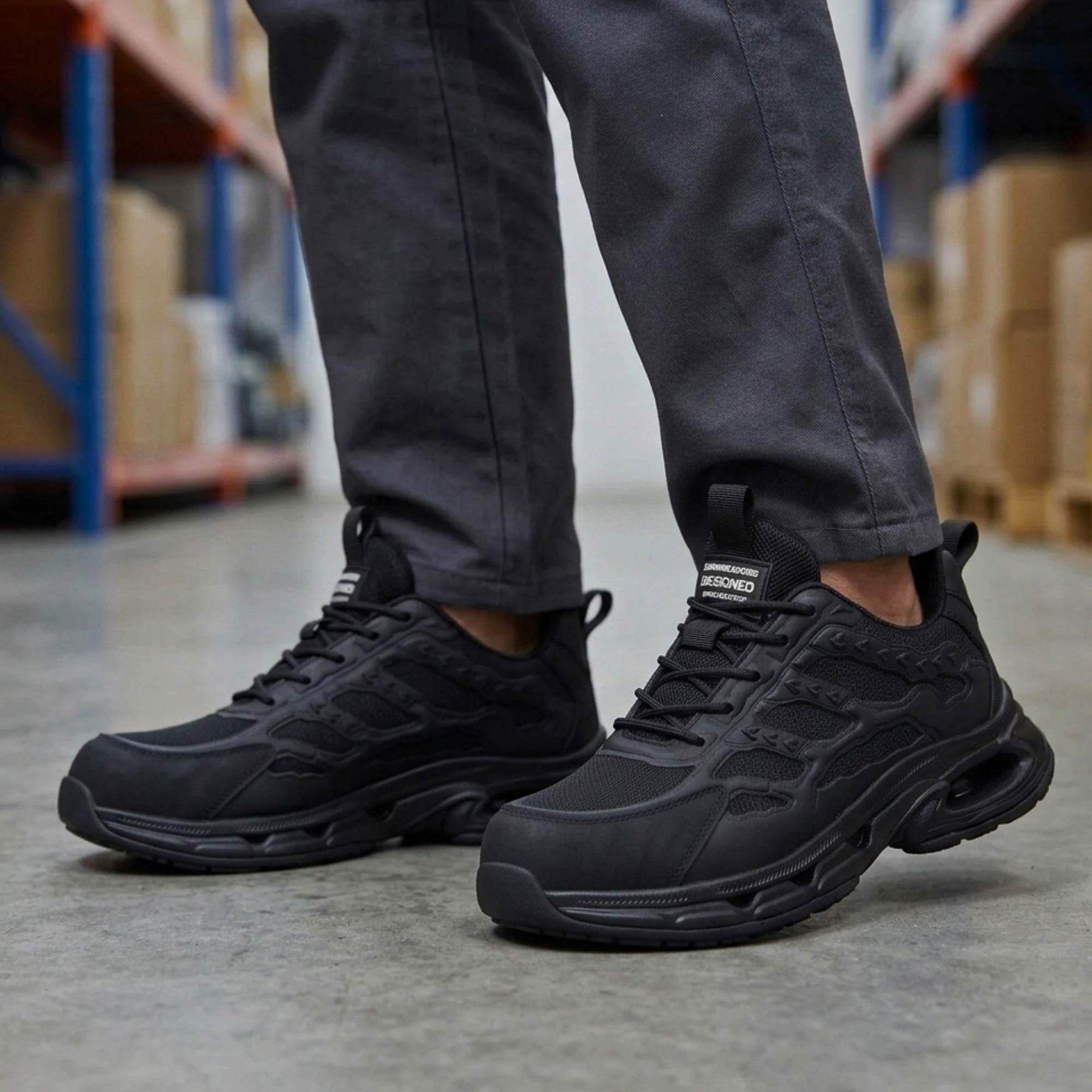 Falcon Black is a safety work shoe designed and engineered to provide superior comfort during long and demanding work shifts. We combined the casual comfort of a sneaker with the durability of a professional work shoe — so you can wear it anywhere and pair it with any outfit with confidence. With its modern design suitable for both workplace and everyday use, Falcon Black keeps you supported and comfortable all day thanks to its lightweight structure and ergonomic fit.